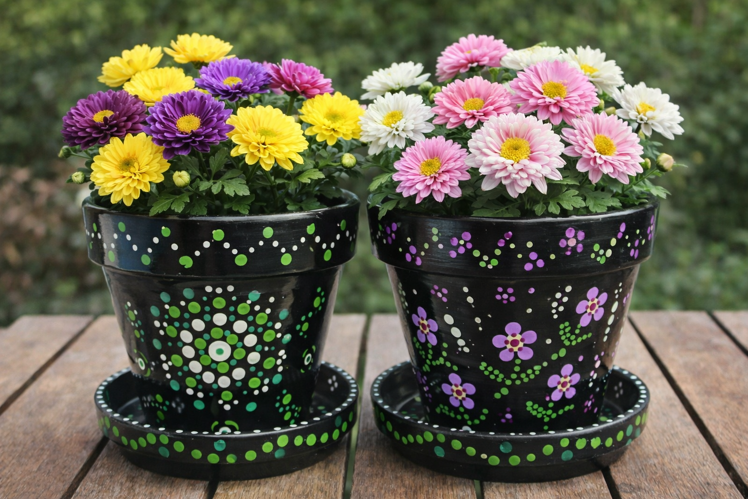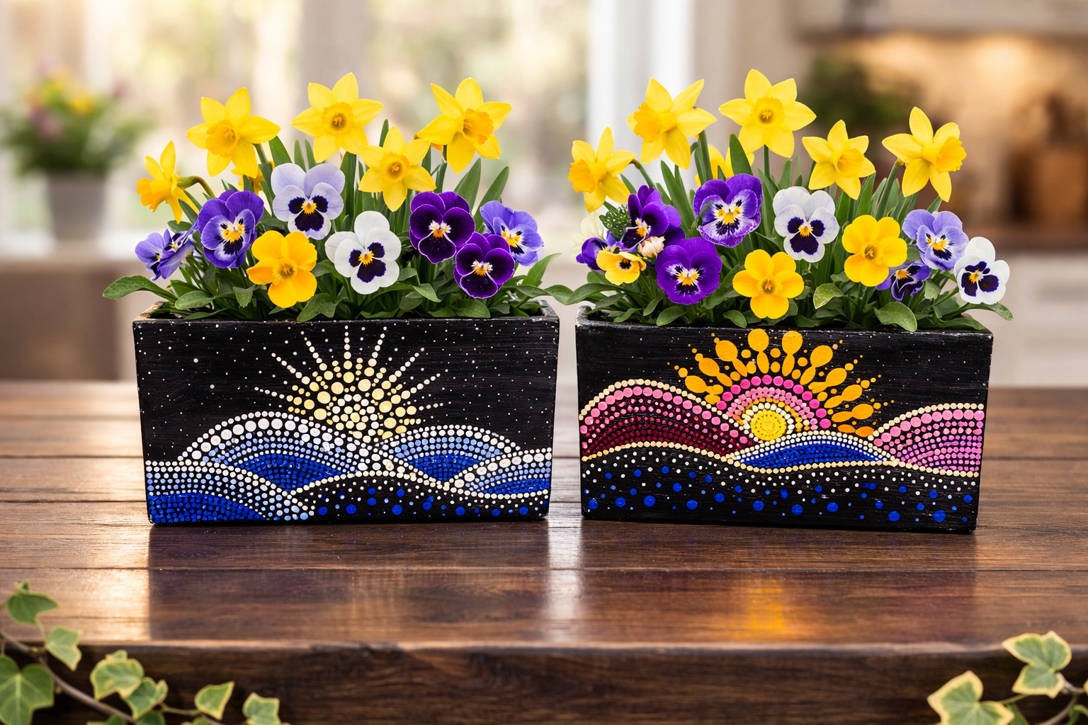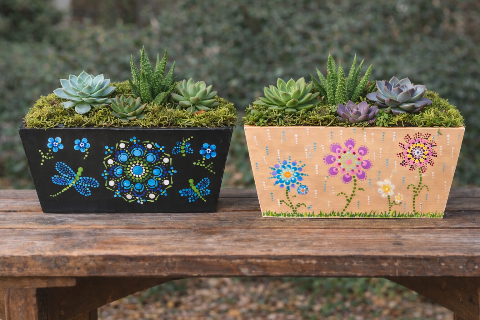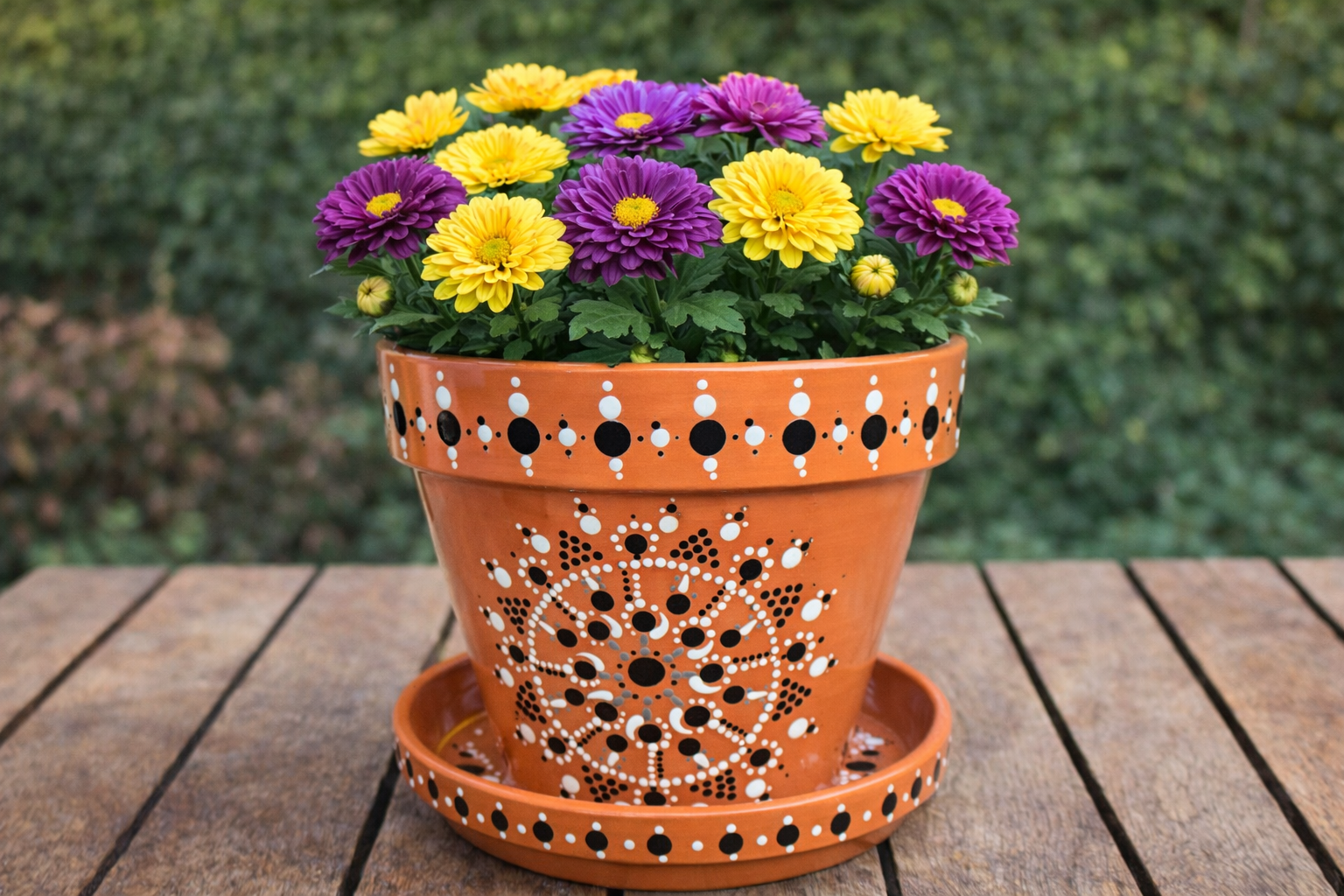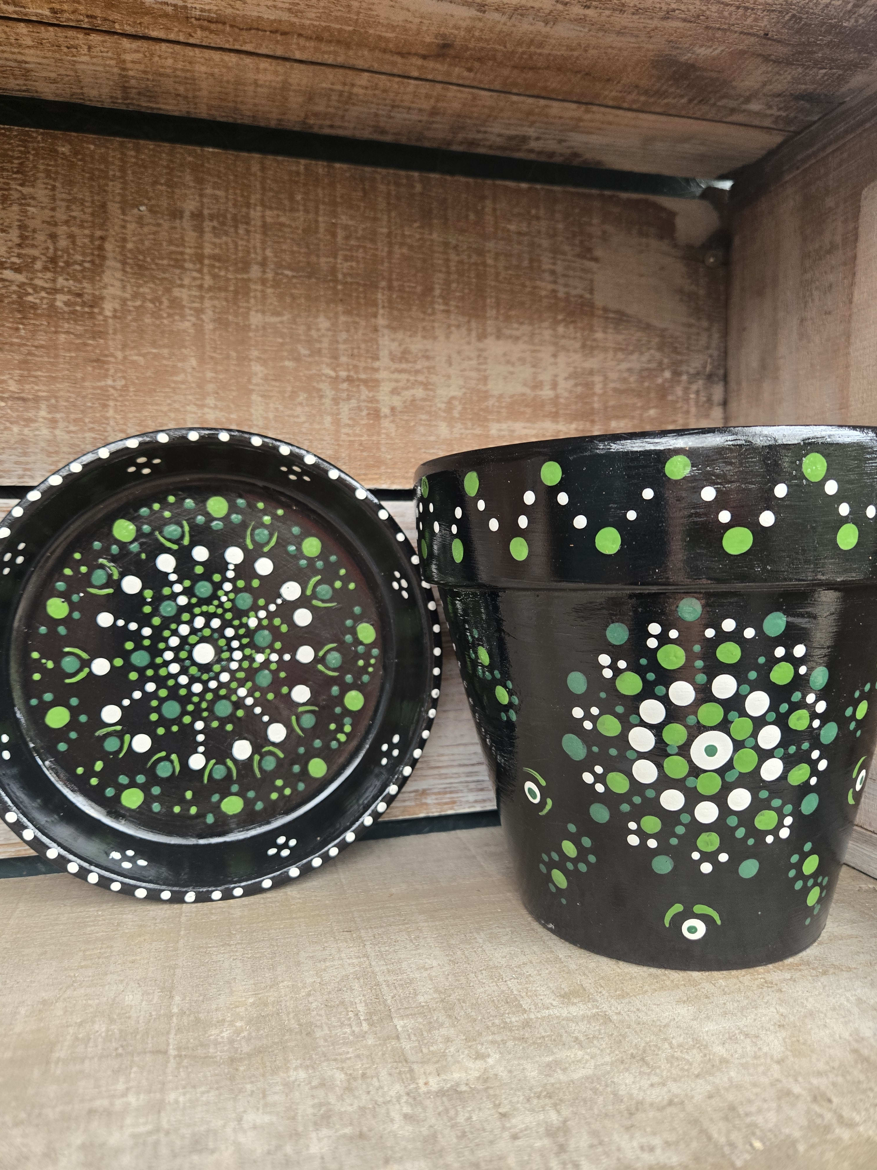 Paint your own dot design to make your planter unique and plant with seasonal plants or succulents for an indoor or outdoor planter.