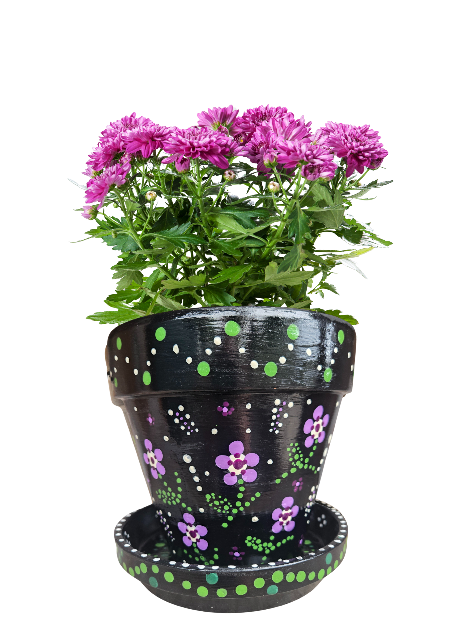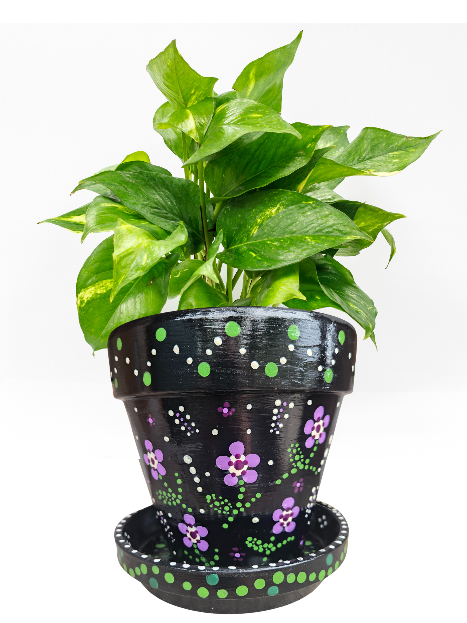 Join us in painting your own 6'' clay pot with saucer. Choose from black or natural base and create your own design.